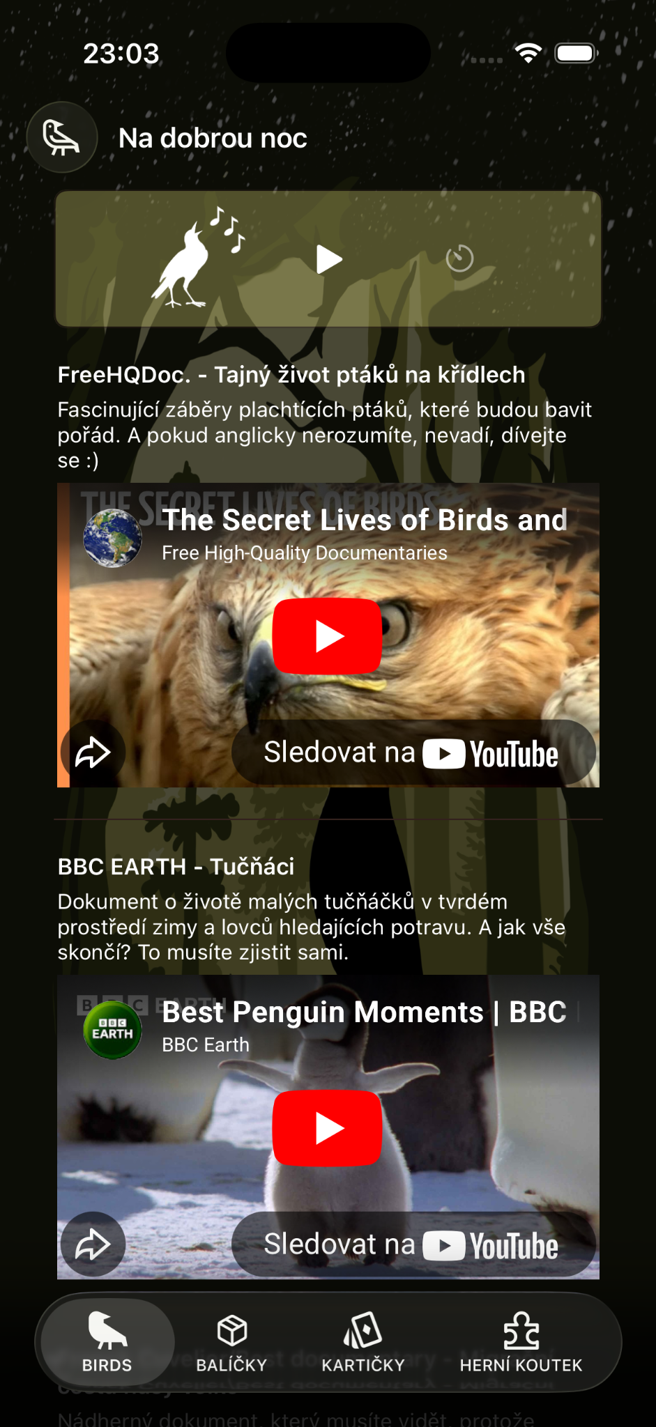 „Krásná aplikace, která potěší nejen zaryté milovníky ptáčků. S dcerkou se k ní moc rády vracíme.“